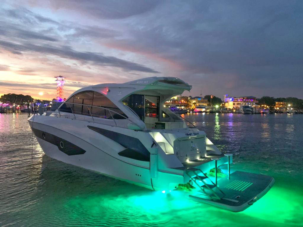 | Garbage disposal receptacle in cockpit | LED courtesy lights in cabin, aft access steps, cockpit and aft gourmet space |