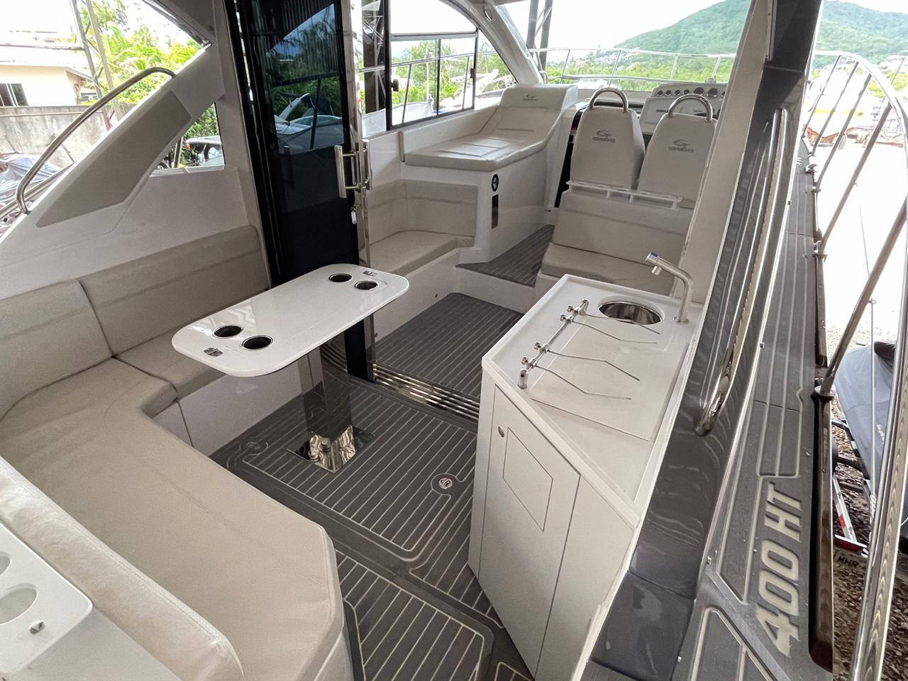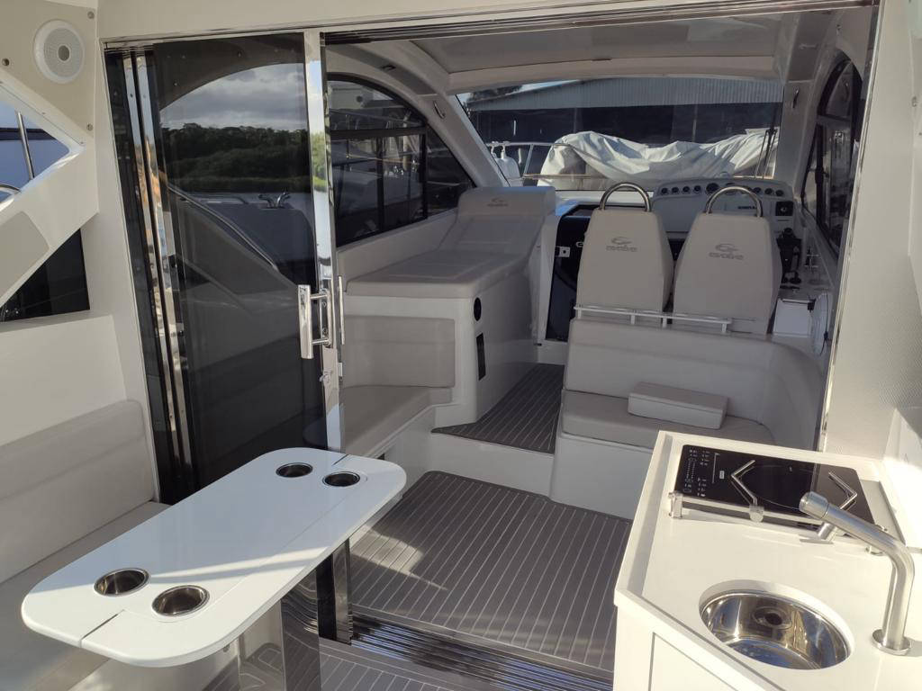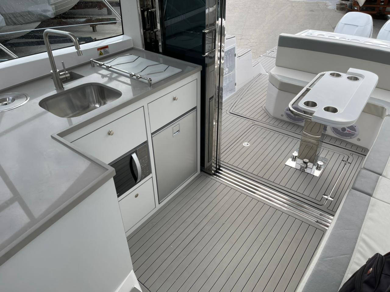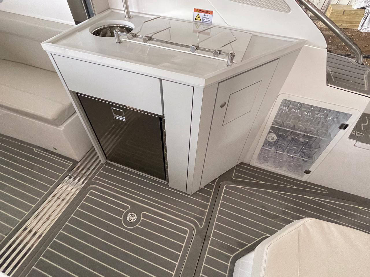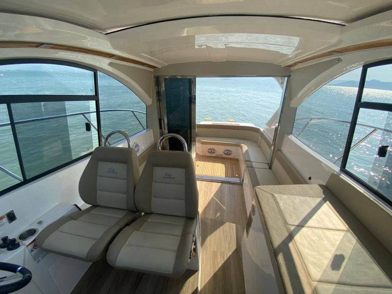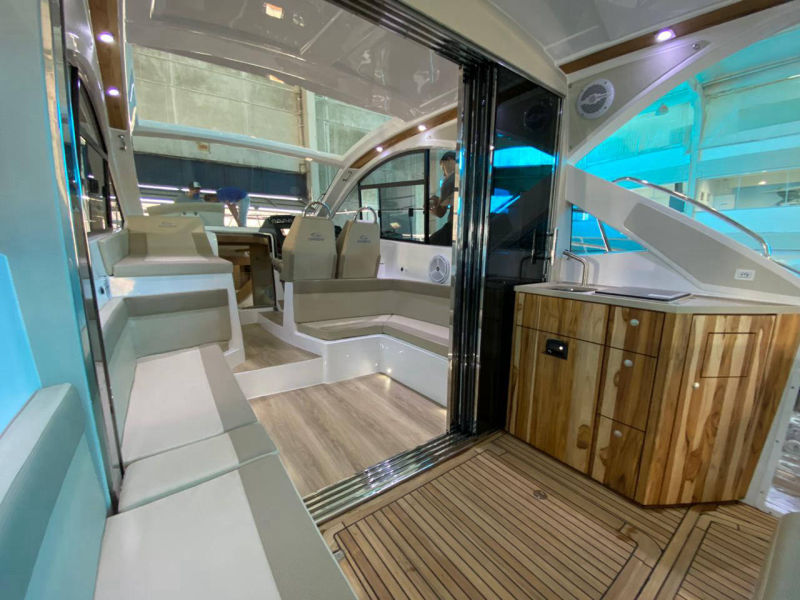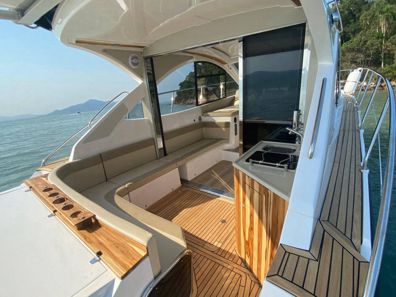 | Hard top with power sunroof | Non-staining, non-fading, anti-slip EVA Flooring throughout the cabin, cockpit and swim platform |