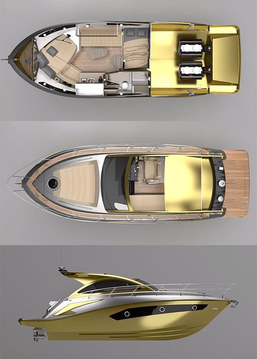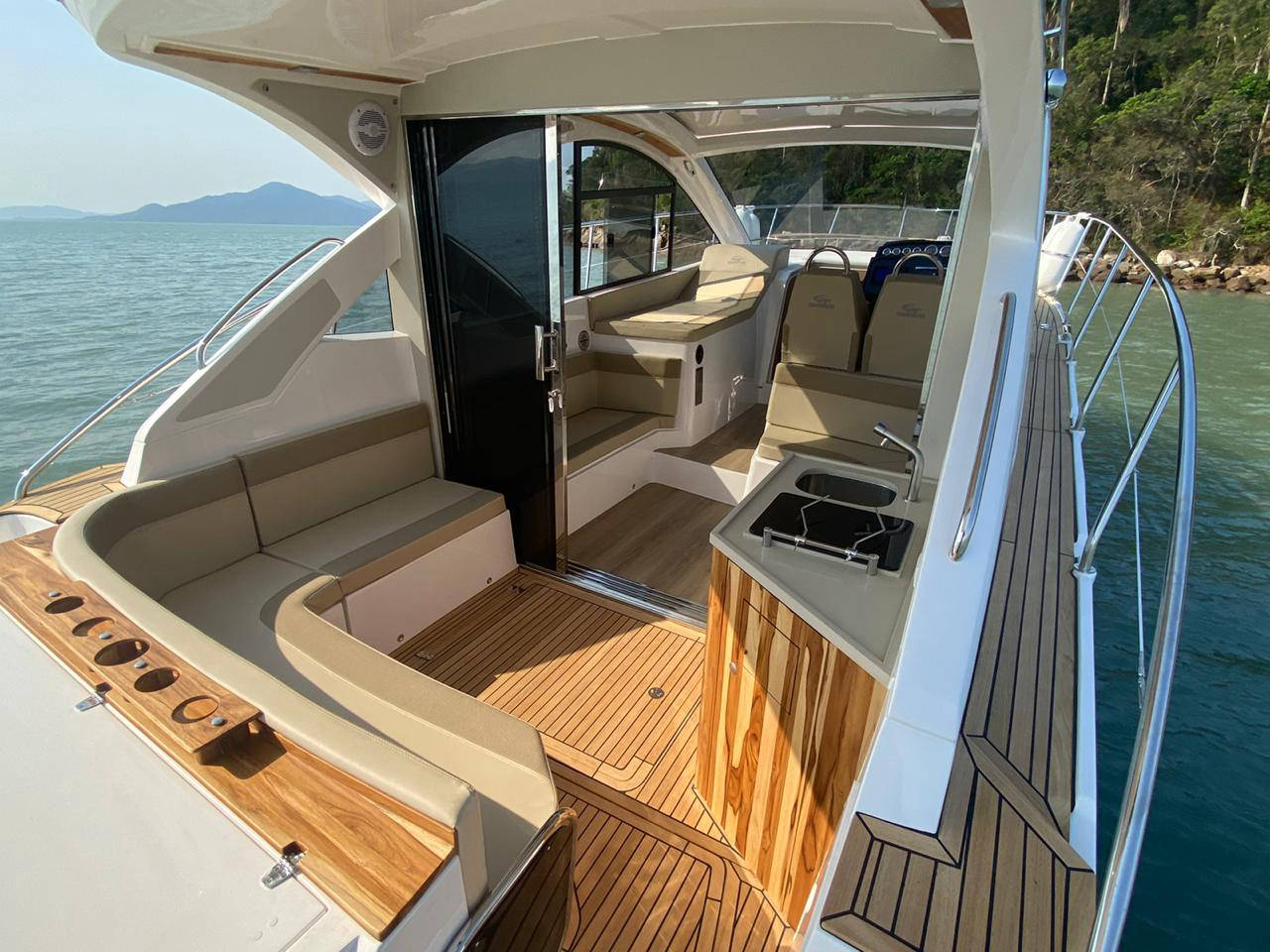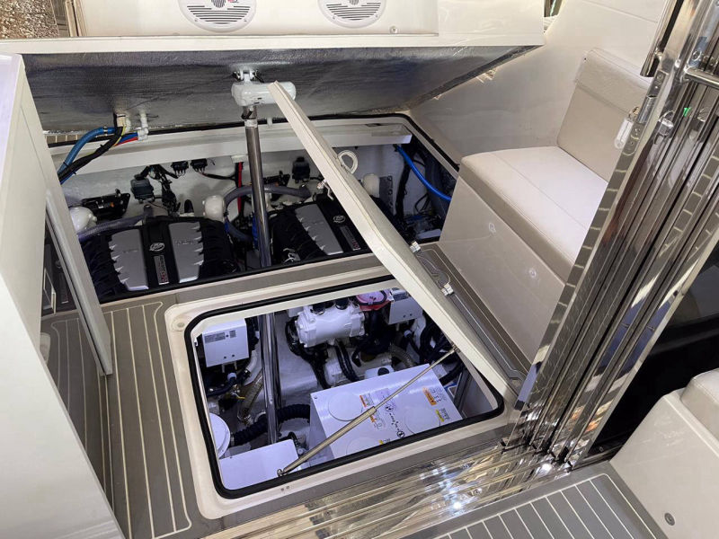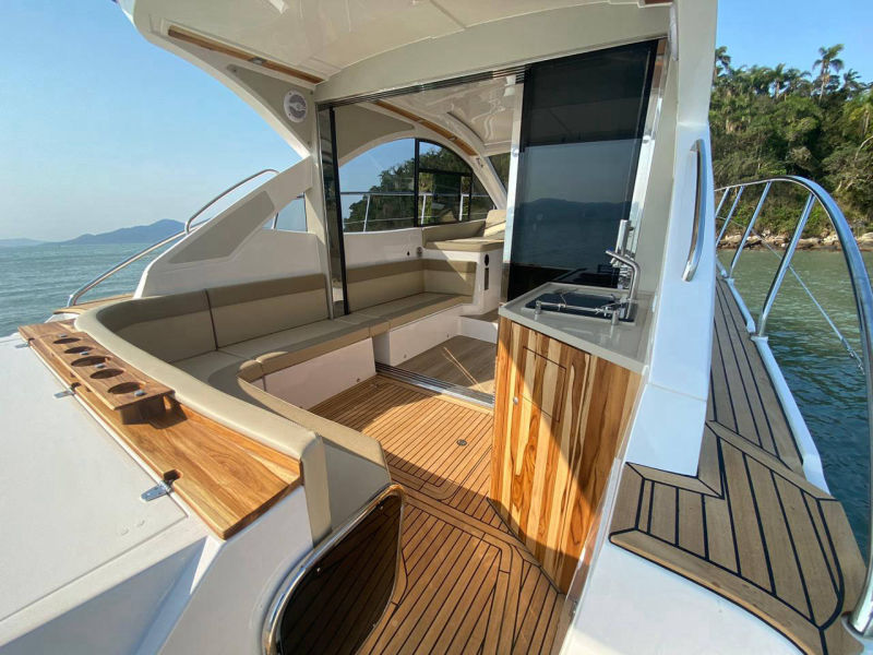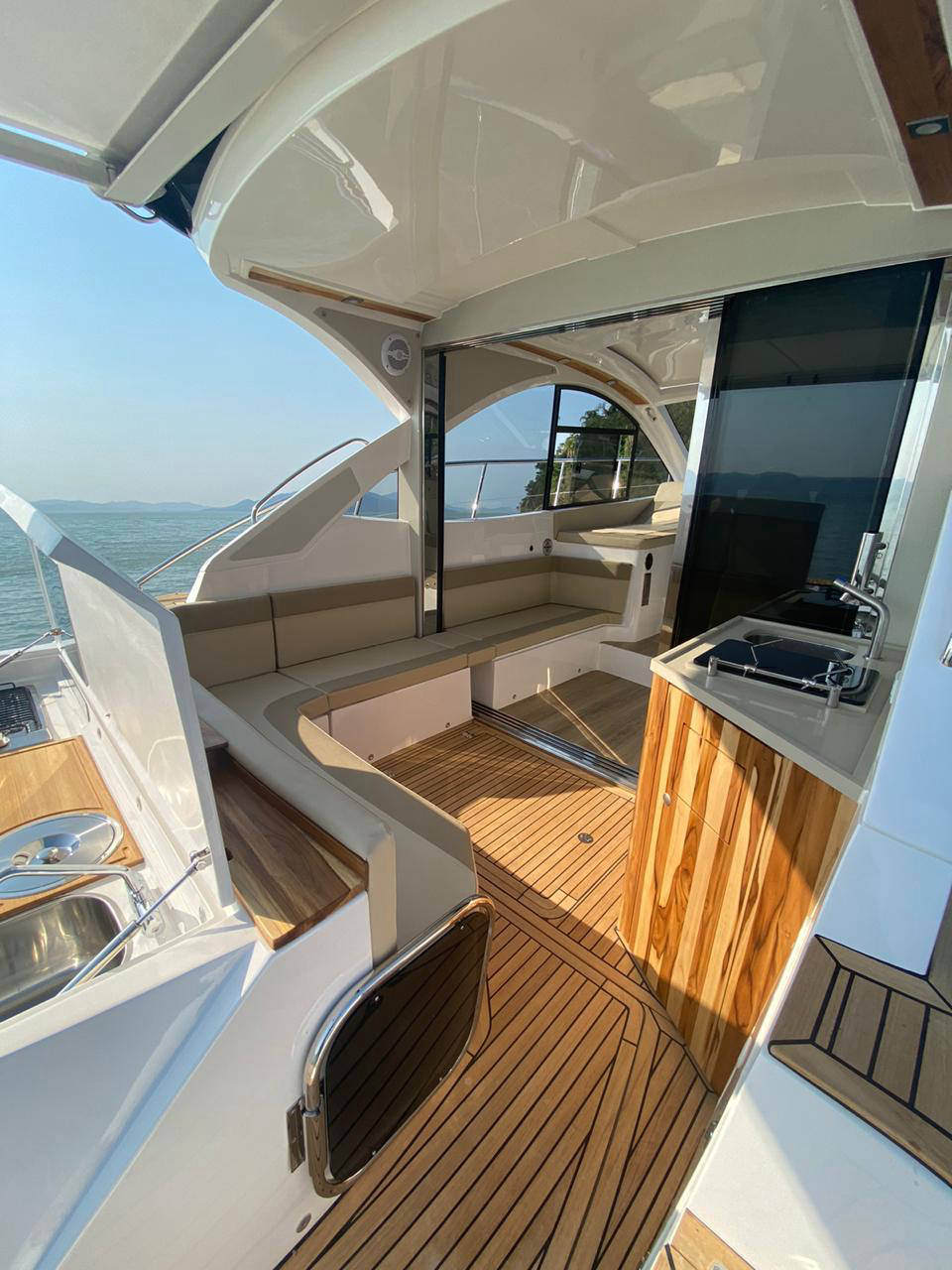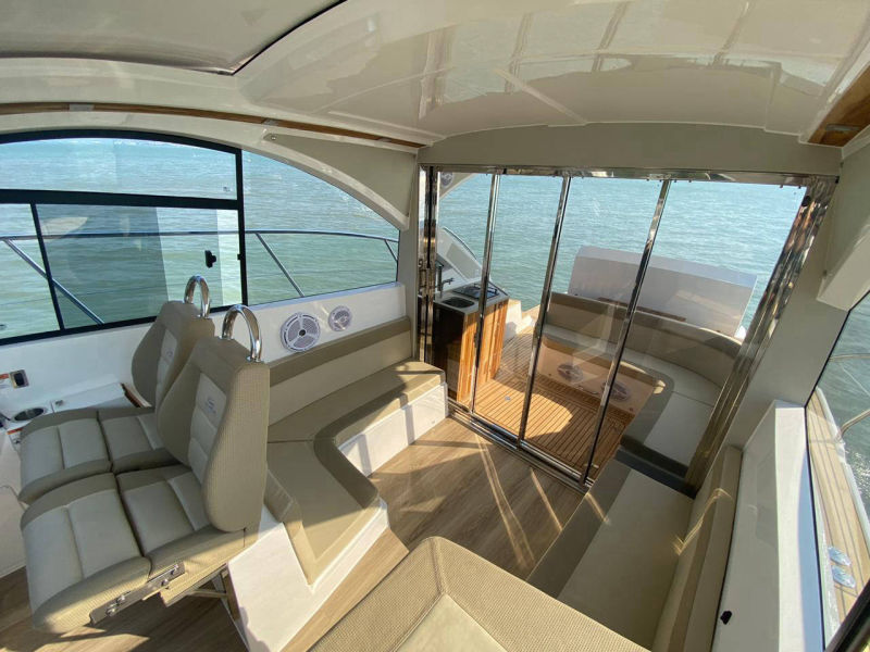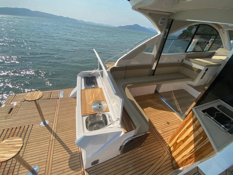 | Hard top with power sunroof | Non-staining, non-fading, anti-slip EVA Flooring throughout the cabin, cockpit and swim platform |