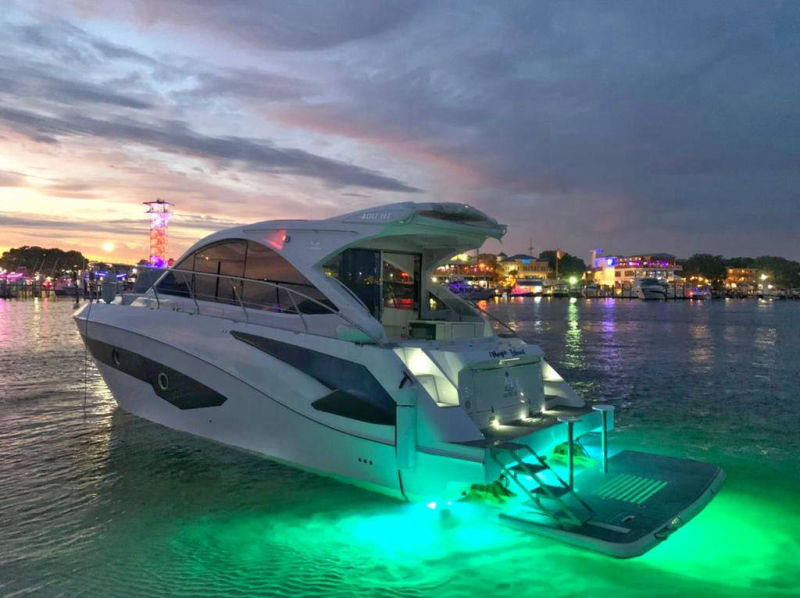 | Garbage disposal receptacle in cockpit | LED courtesy lights in cabin, aft access steps, cockpit and aft gourmet space |